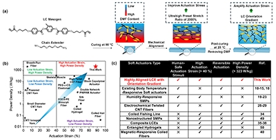 柔性执行器是软体机器人、可穿戴系统、人工肌肉以及智能医疗设备中的核心功能单元,其性能直接决定系统的效率、响应速度与功能复杂度。尽管高电压、电加热或高温刺激能够实现较高的驱动输出,但这些条件往往不适用于人体可穿戴或生物相关应用。因此,开发能够在温和,人机兼容刺激(如体温、低电压、湿度、太阳光照)下运行,同时能够产生优异驱动性能的柔性执行器,是该领域亟需解决的关键科学与工程问题。然而,现有材料体系普遍存在一个长期瓶颈:温和刺激下难以同时兼具高应变与高功率密度,形成性能“不可兼得区”。