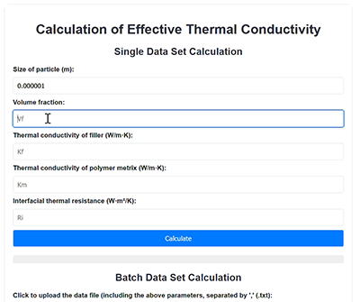 此外,为推动模型的实际应用,研究团队进一步开发了一套 Python 计算模块(图4、图5),单次计算时间低于 10 s,可为高导热复合材料的配方设计与性能优化提供高效、可用的预测工具。