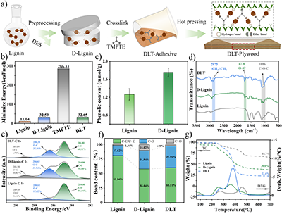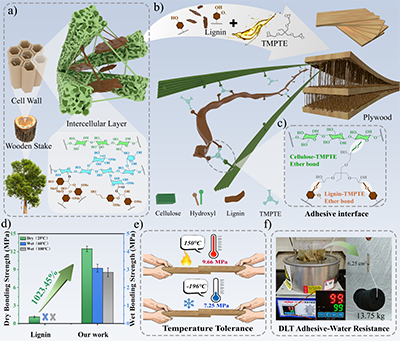 作为全球应用最广泛的结构材料之一,胶合板在建筑、家具、交通运输和包装等领域具有关键作用,其可靠性取决于胶合界面的长期稳定性。传统使用的脲醛树脂、酚醛树脂和环氧树脂等石化基胶粘剂虽具高强度和良好加工性,却面临甲醛释放、微塑料污染等环境风险,“双碳”战略也使行业对绿色替代材料的需求愈加迫切。以木质素为代表的可再生资源为生物基胶粘剂的发展提供了新契机,但其工业化推广的最大障碍在于湿热循环、温度波动等复杂环境下界面易失稳。如何在高粘接强度、环境耐久性与可持续性之间实现真正的平衡,已成为当前绿色结构胶粘剂领域亟待攻克的关键难题。