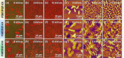 图3. 不同电场强度下P3BT/PQT共混物薄膜的(a-i)偏光图和(a''''-i'''')原子力显微镜图。