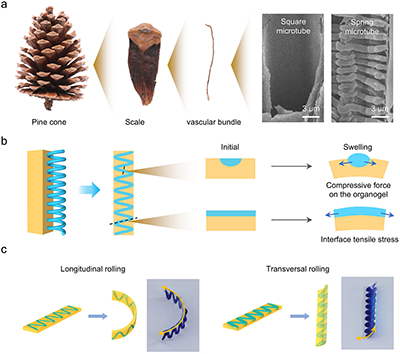 图1. 受松塔启发的正弦图案化HSEO片的仿生设计概念