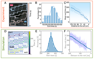图3 液滴马达解决迷宫问题的实验与模拟结果对比