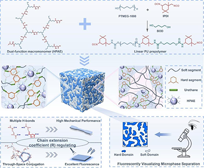 图1. 超支化聚氨酯弹性体(PU-HPAEx)构筑策略