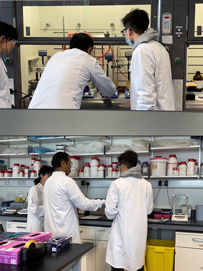 9 王教授(中)正在与博士生李子山(右一)和吕京(左一)共同开展实验并进行讨论