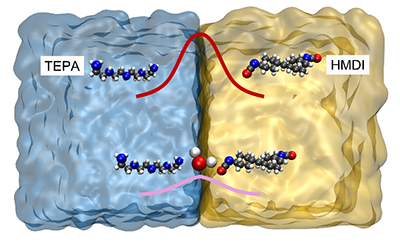 近期,香港科技大学杨晶磊教授团队联合加州理工大学William A. Goddard III教授团队,以TEPA(四乙烯五胺)与 HMDI(4,4''''-二环己基甲烷二异氰酸酯)为快速反应模型系统,结合量子化学和机器学习力场从分子层面模拟预测和实验观测验证的双手段,证实了水分子在界面反应中有效降低质子转移能垒的催化机理和反应扩散路径,为深刻理解界面处反应动力学机制与精准调控聚合物膜材微观形貌提供了清晰参考。