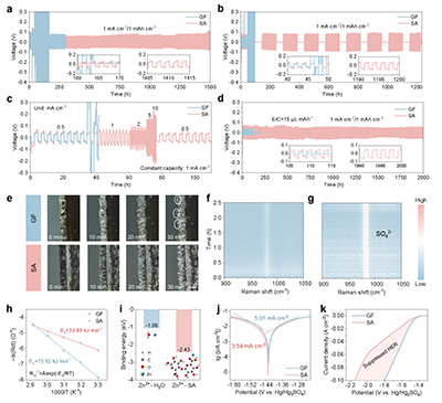 图4. SA层稳定锌负极循环稳定性的机理研究
