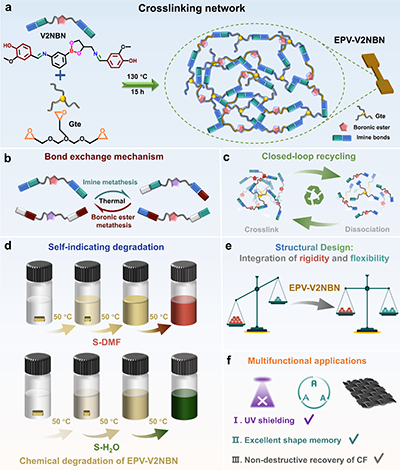 图1 Vitrimer的合成、动态键交换、及多功能性应用