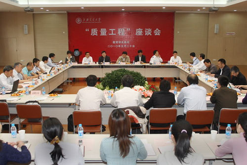 2010年5月20日上午,教育部、财政部“质量工程”座谈会在上海交大召开。座谈会由教育部高教司司长助理宋毅主持,教育部高教司司长张大良、理工处处长李茂国等高教司领导,上海市教委副主任王奇等市教委领导,上海市各高校主管教学副校长、教务处处长等参加了此次座谈会。