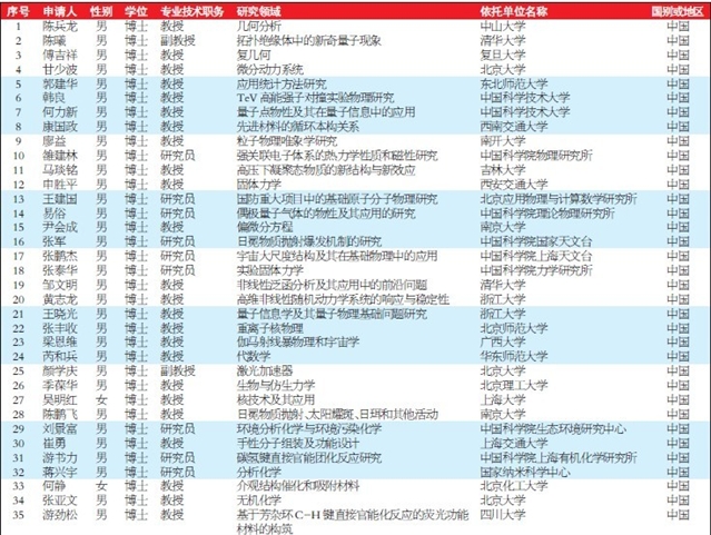 国家杰出青年科学基金建议资助项目申请人名单公示