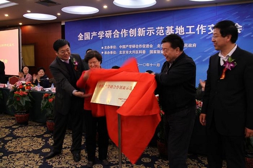 11月27日,由中国产学研合作促进会和北京市大兴区政府共同主办的首届全国产学研合作创新示范基地工作交流会在北京举行。此次会议是为了总结和交流全国产学研合作创新示范基地(试点单位)建设的经验,充分发挥试点基地的集聚、辐射和示范效应。