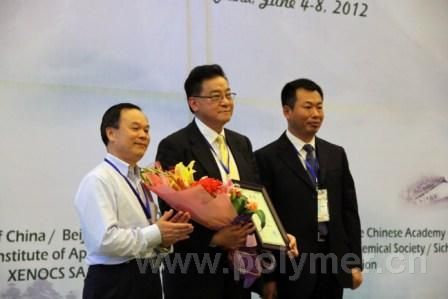 在本次会议的闭幕式上举行了中国化学会授予美国Akron大学程正迪教授“中国化学会荣誉会士”的仪式,以表彰程教授积极推动我国高分子研究与国际学术界的交流与合作,为提升我国高分子的国际影响力做出的突出贡献。中国化学会副理事长周其凤院士、中国化学会秘书长杨振忠研究员向程正迪教授颁发了证书。会议还进行了第六届“冯新德”奖的发奖仪式。“冯新德”奖每年评选一次,表彰上一年度中国在《Polymer》上发表的优秀论文。