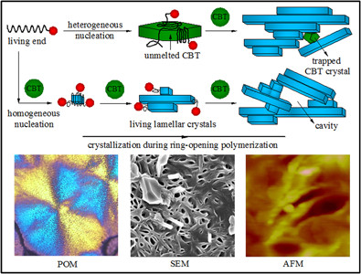 中科院宁波材料所“纤维材料制备技术研究团队”围绕CBT的聚合过程及机理开展了系统性研究工作,最终提出了一种新的增韧方法,即在不改变反应条件、不增加体系黏度的前提下,通过对CBT组分的筛选和纯化,直接调控产物的聚合过程和结晶行为,达到了增韧的目的,并阐明了新的引发聚合和致脆机理,为CBT的深入研究和产业化应用开拓了新的道路。相关工作发表在英国皇家化学学会(RSC)主办的刊物Polymer Chemistry上,影响因子5.321。http://pubs.rsc.org/en/content/articlelanding/2013/py/c2py20847d