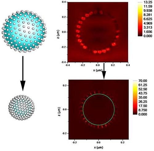 理论计算热敏性复合SERS基底热点收缩前后形成的电磁场强度的变化