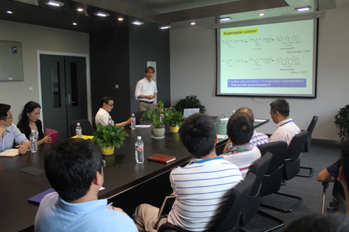 Tsutomu Yokozawa,有机聚合物领域的知名专家。1987年获得东京工业大学有机化学博士学位, 1997-1998在美国伊利诺伊州立大学任访问学者,目前在日本神奈川大学开展有机聚合物方面的研究工作,在权威期刊上发表论文近200余篇,出版专著17章,在该领域有着很高的学术影响力。Tsutomu Yokozawa教授2014年1月开始担任Polymer的副主编,同时也是PRESTO(precursory research for embryonic science and technology)和JST(Japan Science and Technology Agency)的会员。访问期间,高分子事业部的刘升高和郑文革研究员等与Tsutomu Yokozawa进行了热烈的讨论。该次访问不仅增进了学术层面上的交流,更为双方将来的进一步合作铺平了道路。