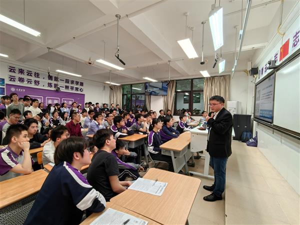 2024年4月11日,龚老师在重庆巴蜀中学招生宣传。高三约150人参加。