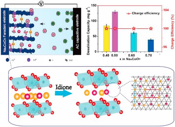 祝贺周瑞娟同学文章被《Desalination》接受。《Desalination》期刊IF:6.035,中科院大类工程技术一区,小类工程化工和水资源均为一区。是水资源处理方向的权威期刊。文中我们研究了钴酸钠电极材料层间随钠含量不同形成了钠离子的有序化亚稳相对脱钠性能的影响。利用亚稳定相区间模型解释了不同钠含量NaCoO2脱盐量和脱盐速率的变化规律。