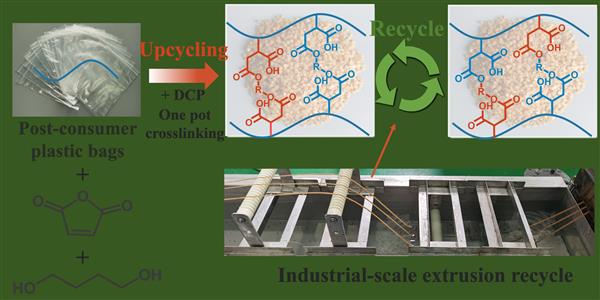 论文链接:Upcycling of post-consumer polyolefin plastics to covalent adaptable networks via in situ continuous extrusion cross-linking - Green Chemistry (RSC Publishing)