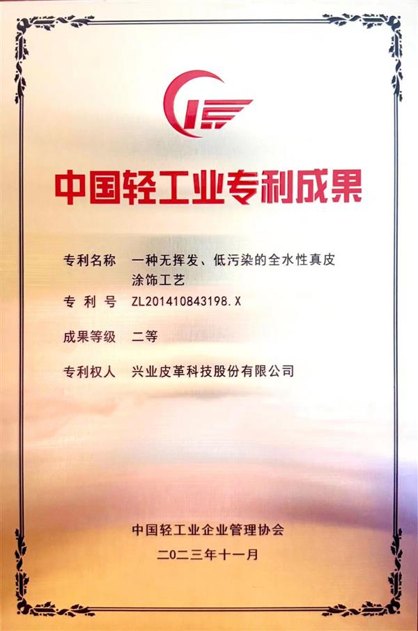 本专利属于核心专利,专利技术大规模在企业“平面NP”“小牛NP”“NP摔”系列产品上得到应用,对改善皮革涂饰技术的生态性能,减少涂饰过程中的VOC,促进皮革产品的生态性能具有积极作用。