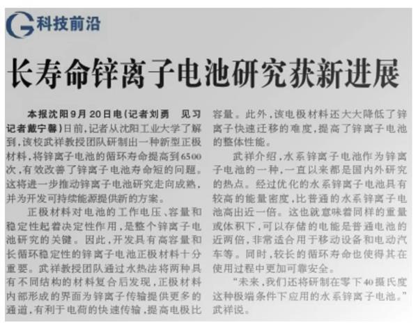 光明日报社报道课题组锌电方面的研究进展