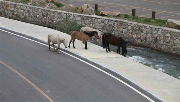 在开往四姑娘路上的高山休息区,远远的我们看到了四姑娘山的山顶,此处风景优美,但是气温瞬间降了下来,大家穿上外套,下车在这里尽情的欣赏远处的雪山,当然少不了拍拍拍。
