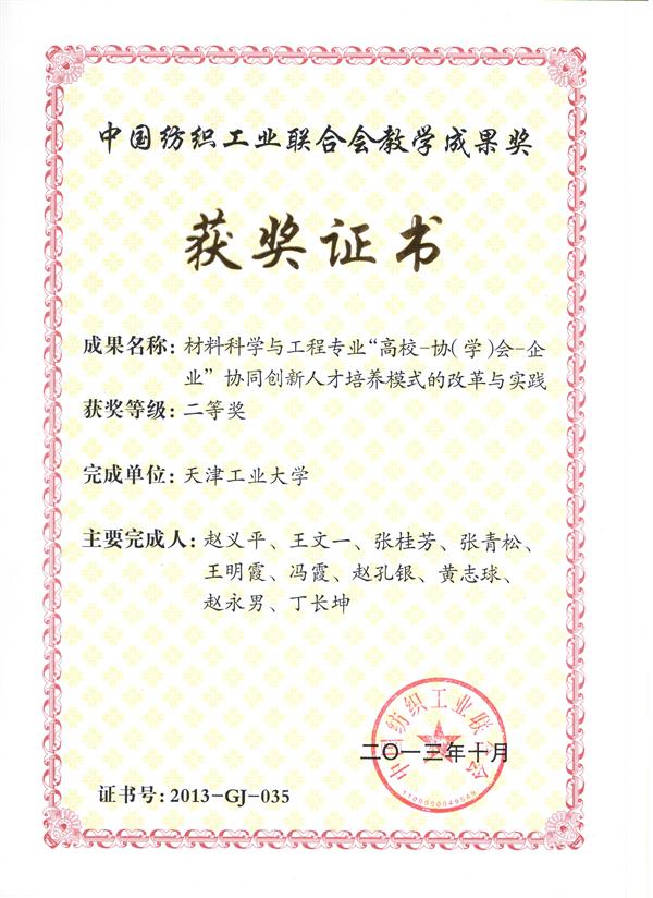 2013年获中国纺织工业联合会纺织教育教学成果奖二等奖